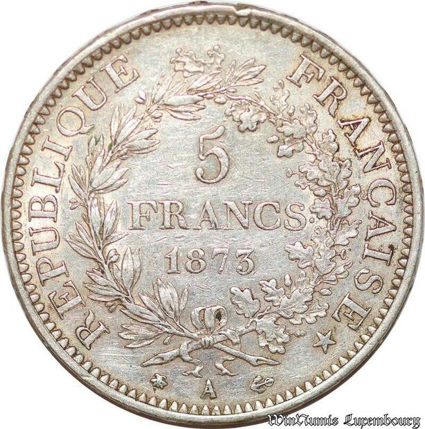 S1680 France 5 Francs Hercule 1873 A Paris Argent Silver -> Faire Offre