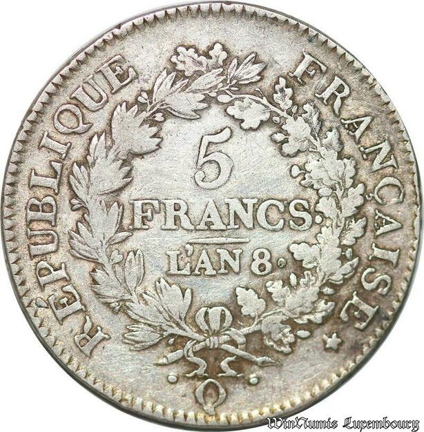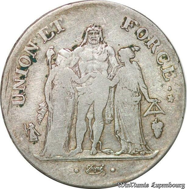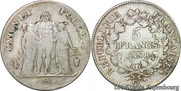 S1694 France 5 Francs Hercule Union et Force O Riom An 8 - Make Offer