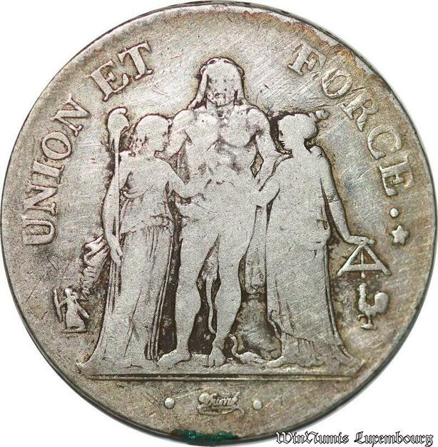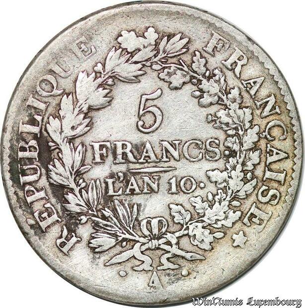 S1696 France 5 Francs Union et Force An 10 A Paris Argent