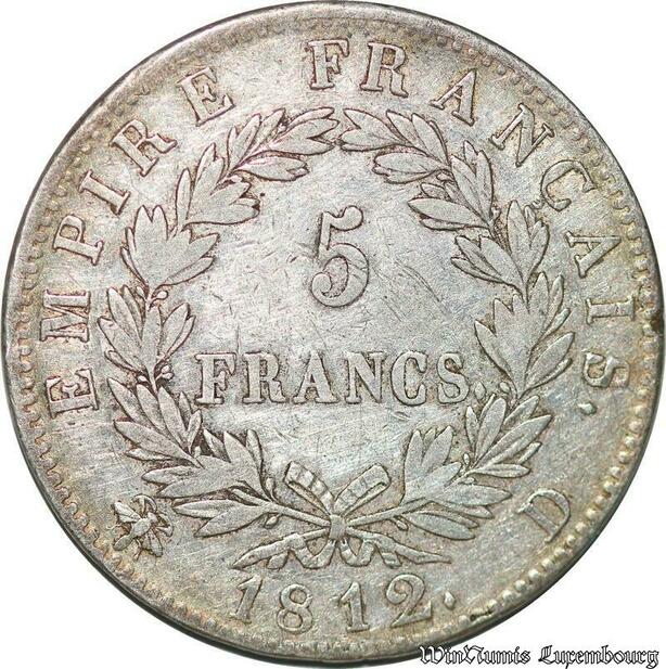 S1705 France 5 Francs Napoléon Empereur 1812 D Lyon Argent Silver -> Faire Offre