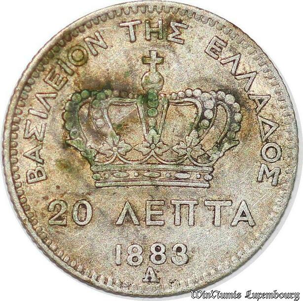 S1730 Scarce Greece 20 Lepta George I 1883 A Paris Silver -> Make offer