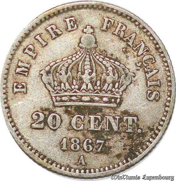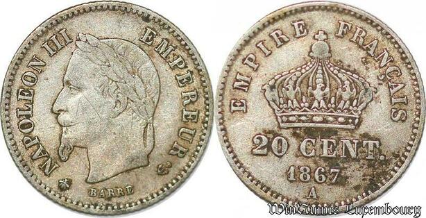 S1750 France France 20 Centimes Napoléon I 1867 BB Strasbourg Argent Silver Superbe