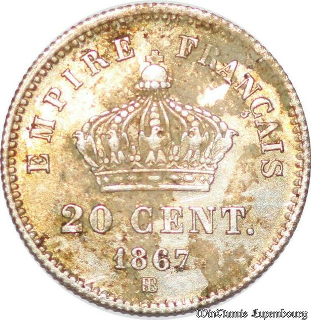 S1758 France 20 Centimes Napoléon I 1867 BB Strasbourg Argent Silver SUP