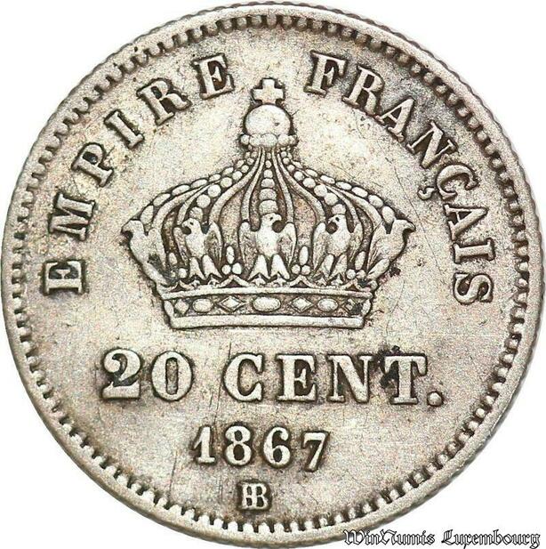 S1765 France 20 Centimes Napoléon I 1867 BB Strasbourg Argent Silver -> Faire Offre