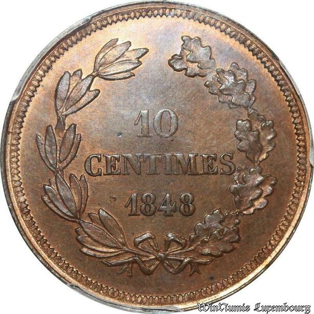 S1856 Rare France 10 Centimes Concours Pillard 1848 PCGS SP65 Finest - Faire Offre