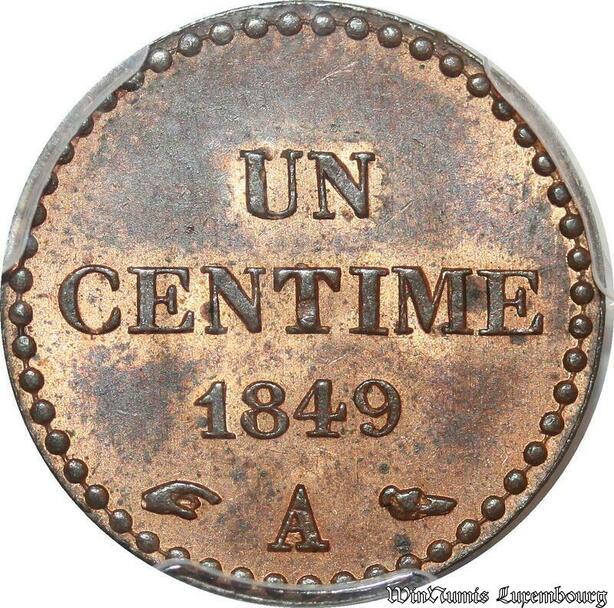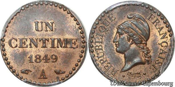 S1859 Rare France 1 Centime Dupré 1849 A PCGS MS64 FDC - Faire Offre