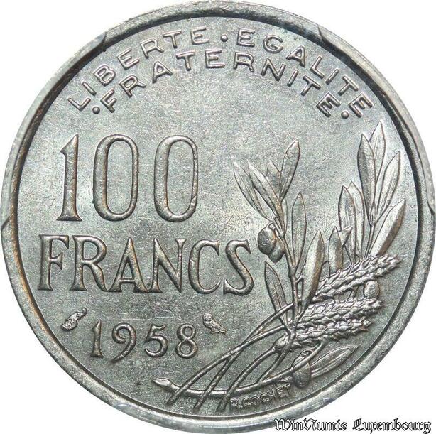 S1872 Rare France 100 Francs Cochet 1958 Chouette PCGS MS63 Splendide