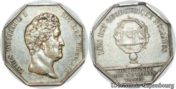 S1894 France Jeton Louis-Philippe I 1773 1850 Compagnie Notaires Paris Michaud Argent