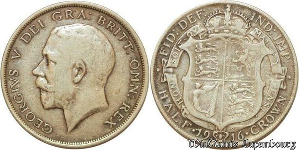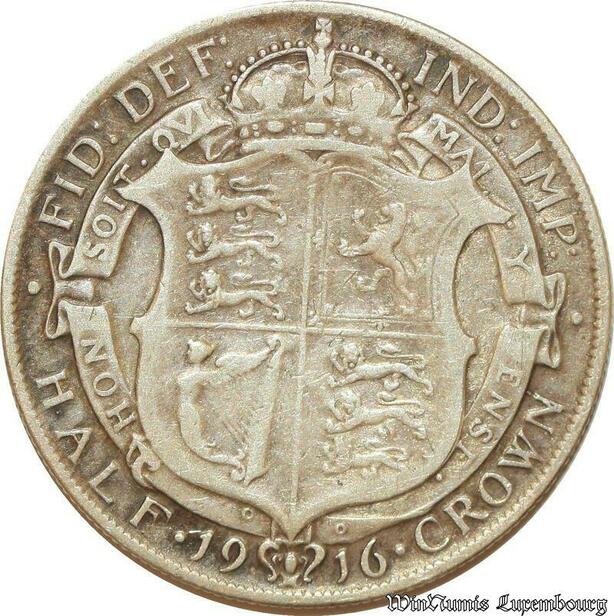 S1907 United Kingdom 1/2 Crown George V 1916 Argent Silver- Faire Offre