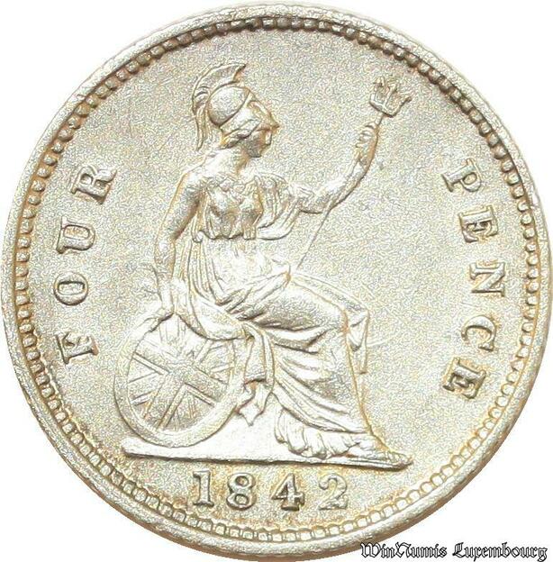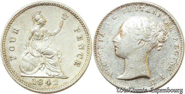 S1908 Rare United Kingdom 4 Pence Victoria Regina 1842 Argent Silver- Faire Offre