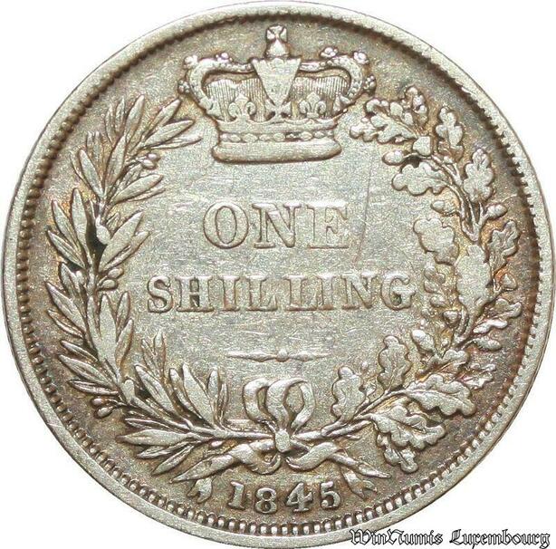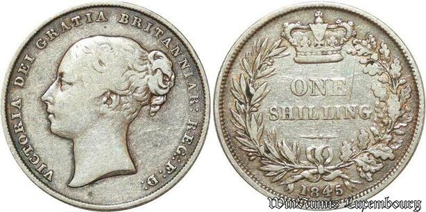 S1916 Rare United Kingdom 1 Shilling Victoria Dei Gratia 1845 Argent Silver