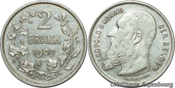 S1924 Belgium 2 Francs Léopold II Koning 1909 Argent Silver - Faire Offre