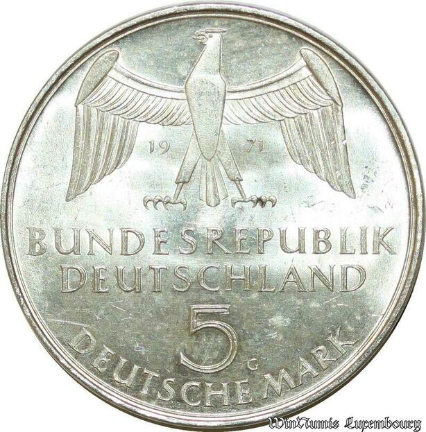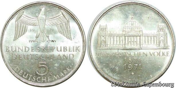 S1932 Germany 5 Deutsche Mark Bundesrepublik Deutschland Dem Volke 1971 G Silver SPL