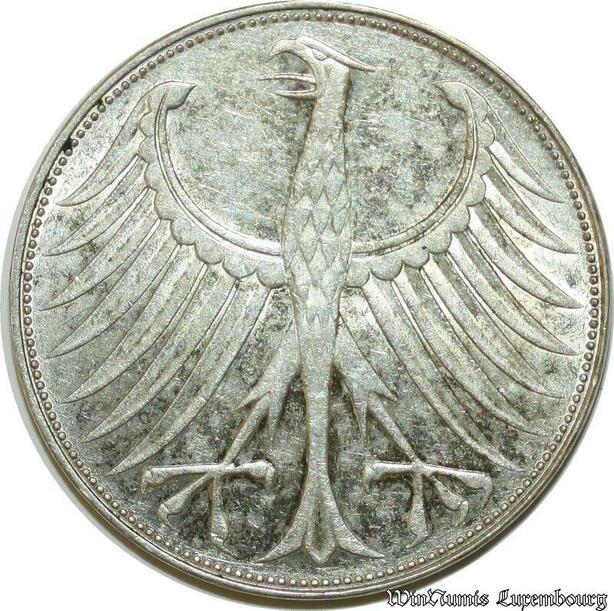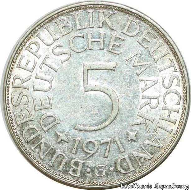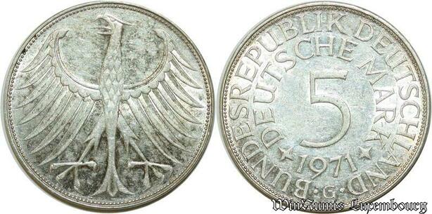 S1936 Allemagne 5 Mark Bundesrepublik Deutschland 1971 G Argent