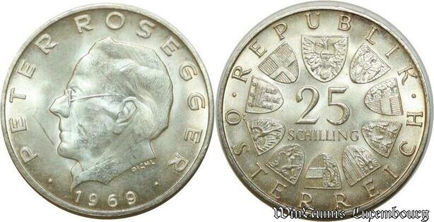 S1943 Austria 25 Schilling Republikösterreich Rosegger 1969 PICHEL Silver FDC