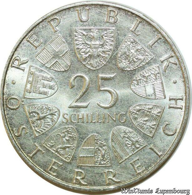 S1945 Austria 25 Schilling Republikösterreich Reinhardt 1973 Welz Silver FDC