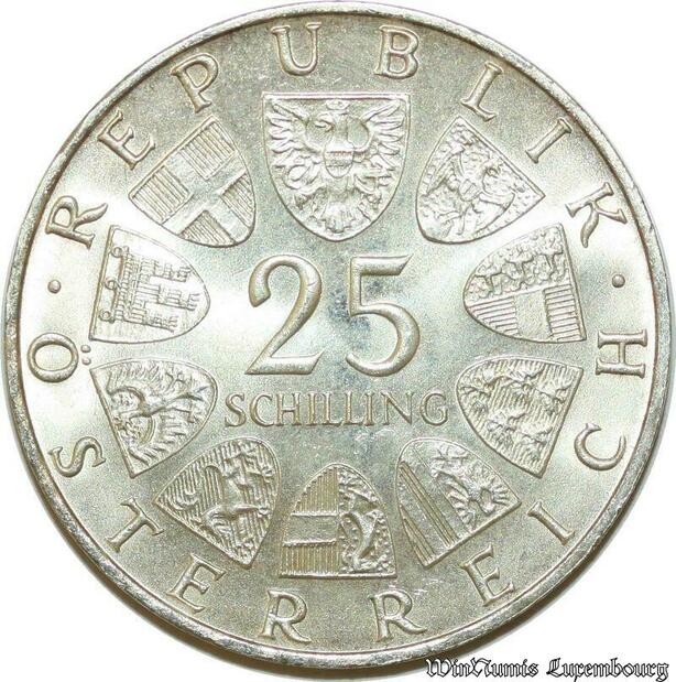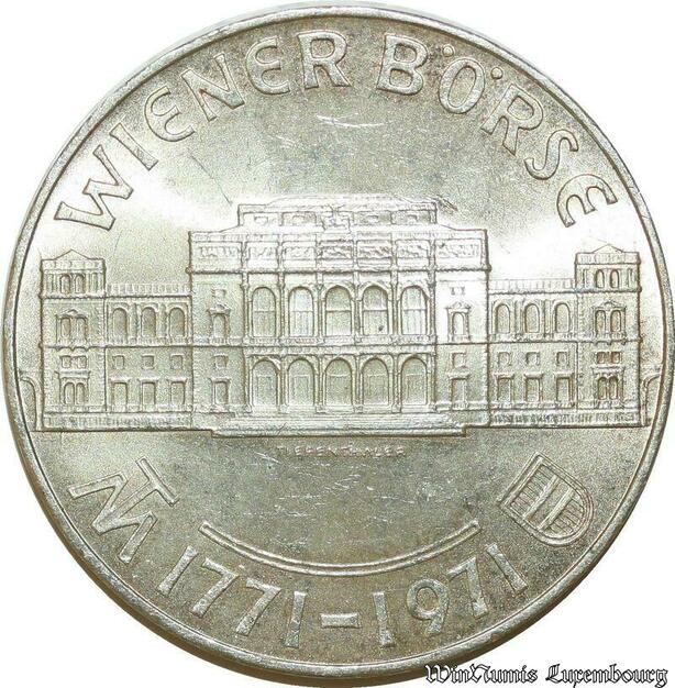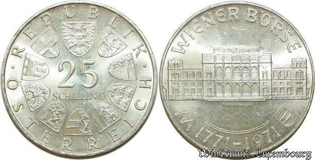 S1946 Austria 25 Schilling Republikösterreich Börse 1971 Tiefenthaler Silver FDC