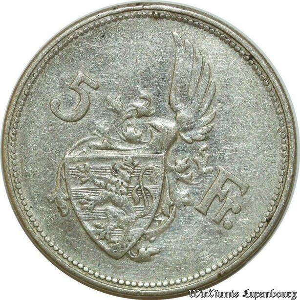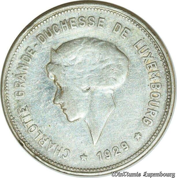 S1950 Luxembourg 5 Francs Grande Duchesse Charlotte 1929 Argent