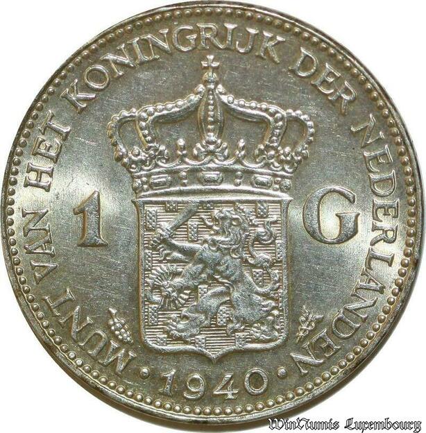 S1955 Netherlands 1 Florin wilhelmina I 1940 Argent Silver Splendide ->Make offer