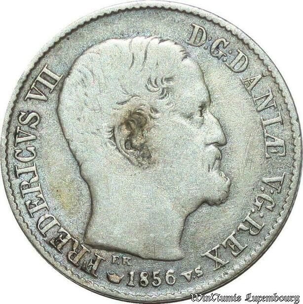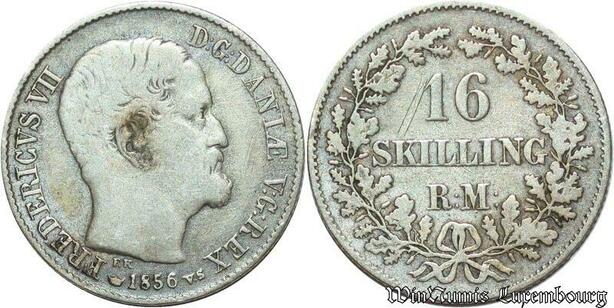 S1958 Denmark Danemark 16 Skilling Rigsmont 1856 Argent Silver ->Faire Offre