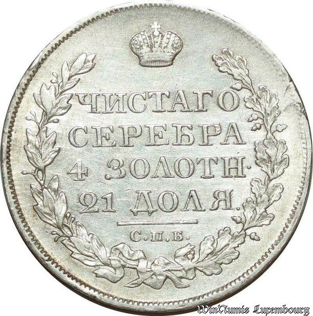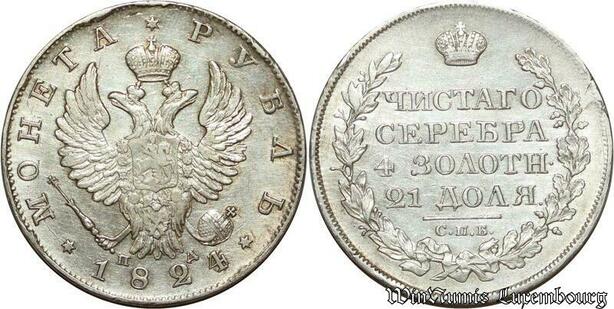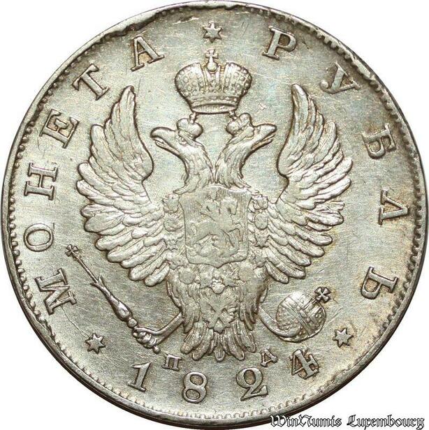 S1964 Russia Alexander I Rouble 1824/3 СПБ-ПД St. Petersburg Argent SUP