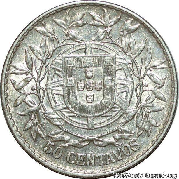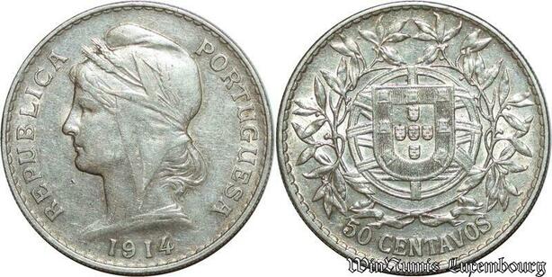 S1969 Portugal 50 Centavos Republica Portugesa 1914 Argent Silver - Faire Offre