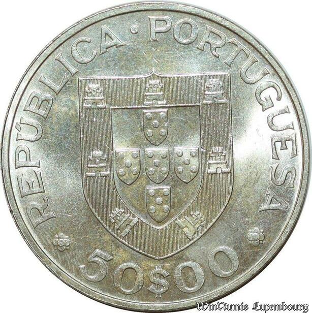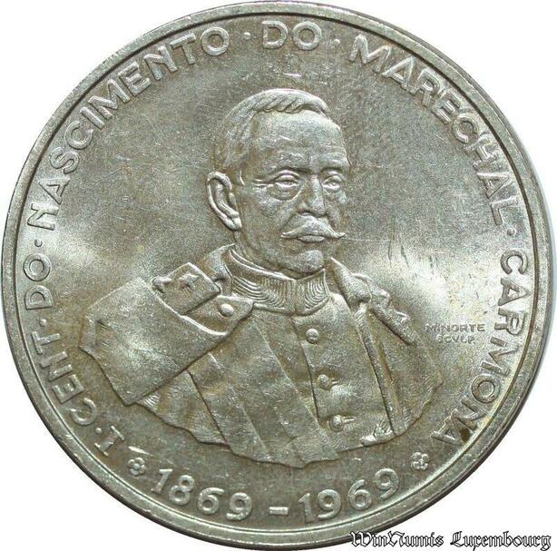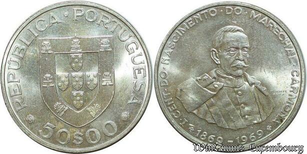 S1977 Portugal 50 Escudos Maréchal Carmona REp Portuguesa 1968 Silver FDC