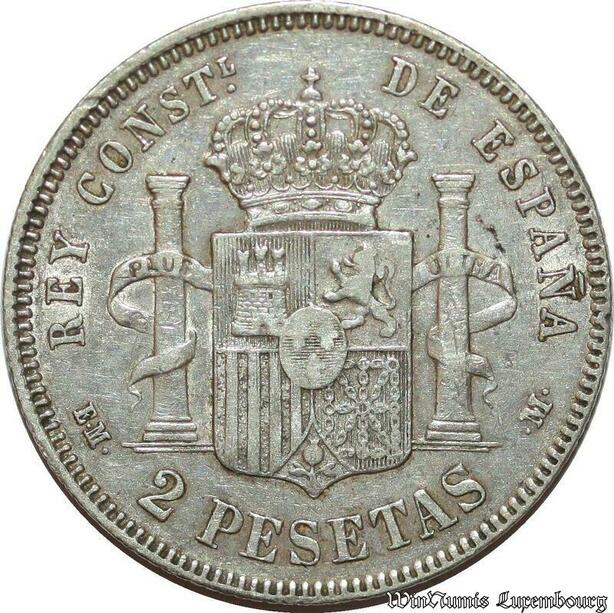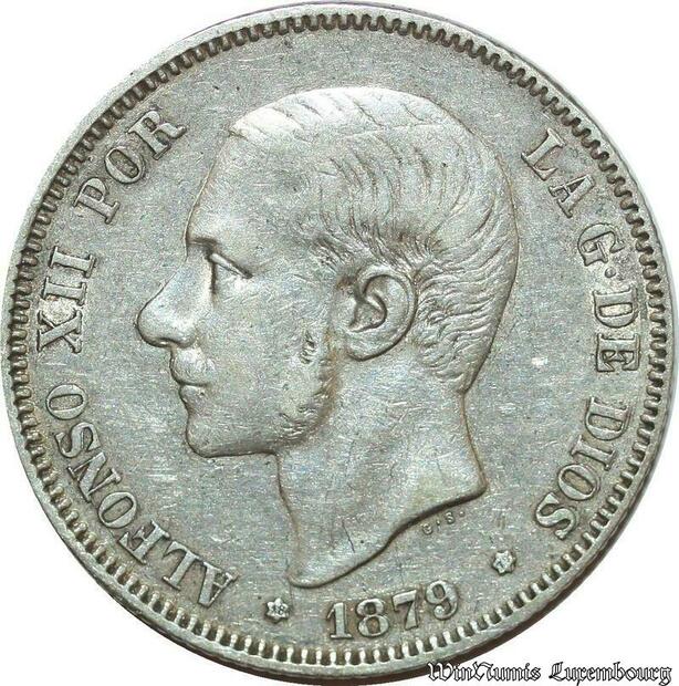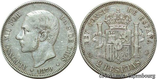 S1986 Scarce Spain 2 Pesetas Alphonse XII 1879 (79) Argent Silver