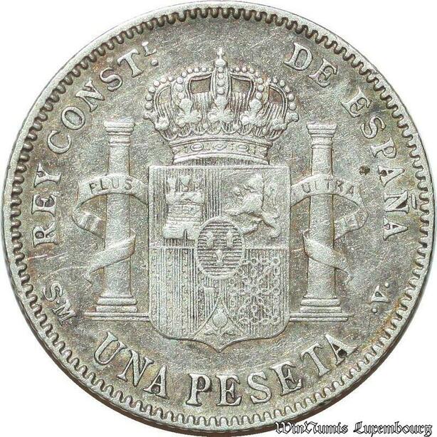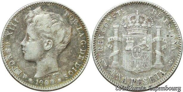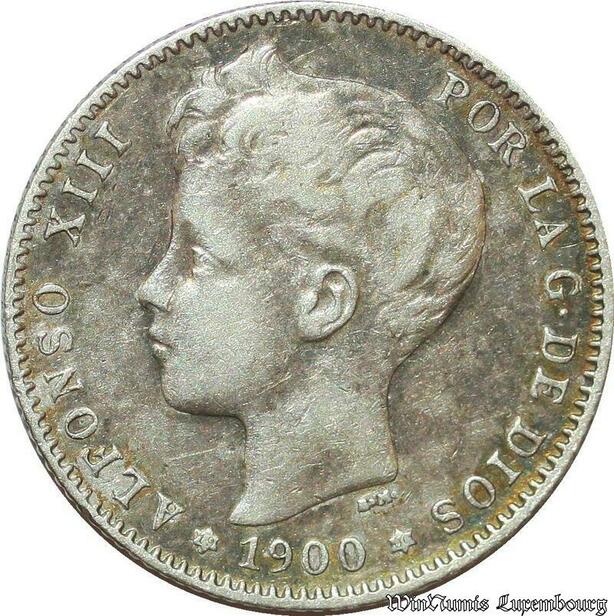 S1990 Espagne 1 Peseta por la G de dios Alphonse XIII 1900 Argent Silver