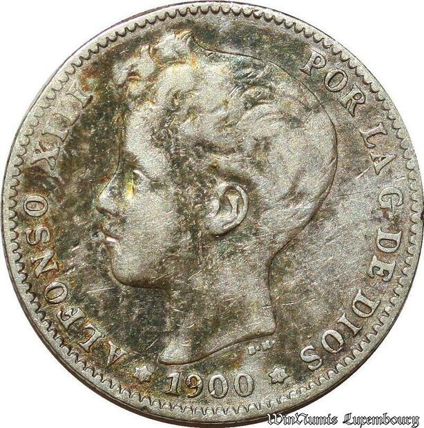 S1991 Spain 1 Peseta por la G de dios Alphonse XIII 1900 Argent Silver