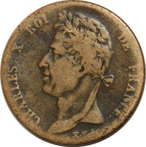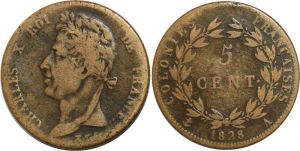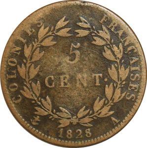 T9112 French Colonies Guyana Guadeloupe 5 Centimes Charles X 1828 A Paris ->FO