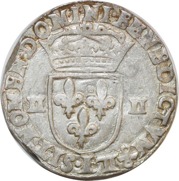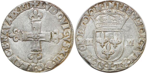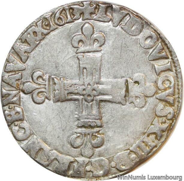 T3921 Rare 1/4 Ecu Croix de face Louis XIII 1613 L Bayonne Argent Quasi SUP
