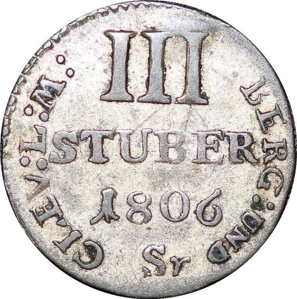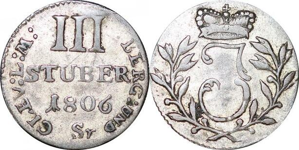P0010 Germany Berg 3 Stüber Joachim Murat 1806 Sr Silver KM10 XF/AU
