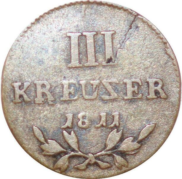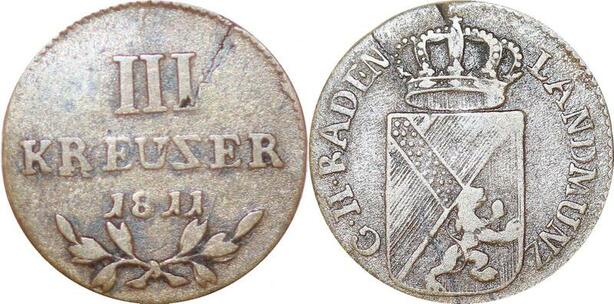 P0020 Scarce Germany Error Baden 3 Kreuzer Karl Ludwig Friedrich 1811 XF