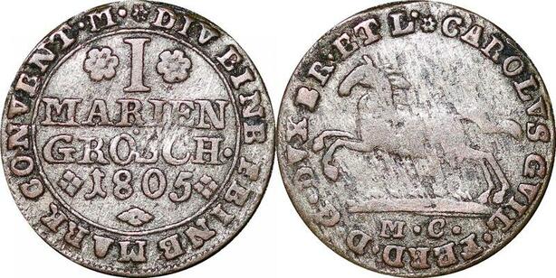 P0037 Germany Brunswick Wolfenbüttel Mariengroschen Wilhelm Ferdinand 1805 MC