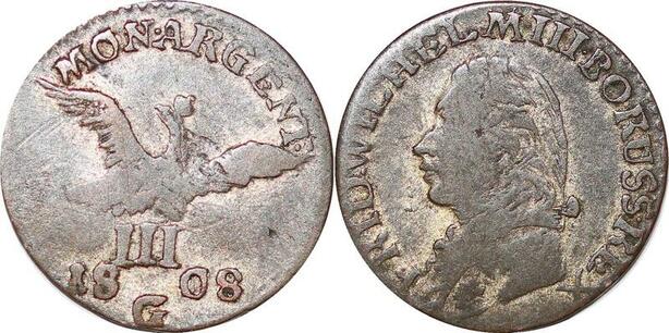 P0050 German Poland 3 Groschen Friedrich III 1808 G ->Make offer