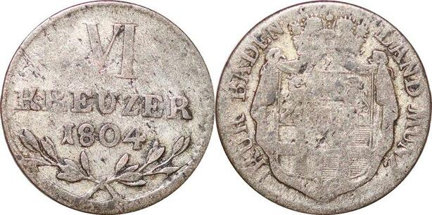 P0064 Scarce Germany Baden 6 Kreuzer Landmünze Karl Ludwig Friedrich 1804
