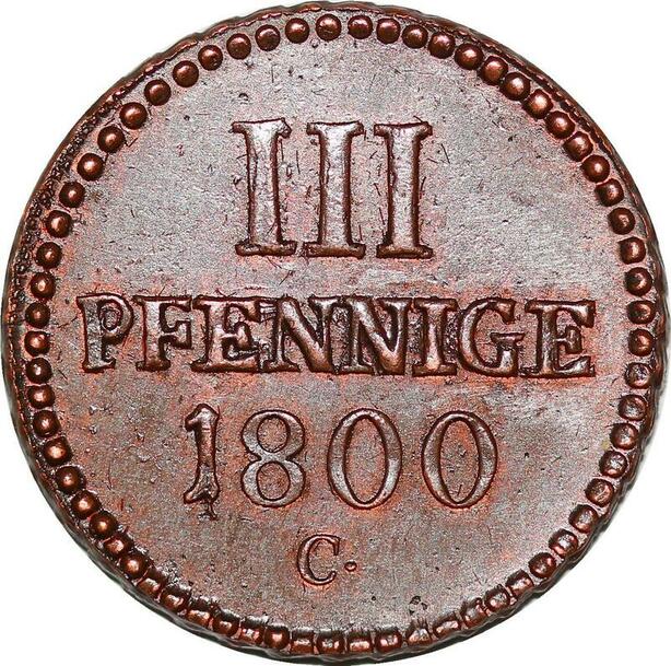 P0072 Scarce Germany Saxony 3 Pfennig Friedrich August III 1800 C UNC BU !!!