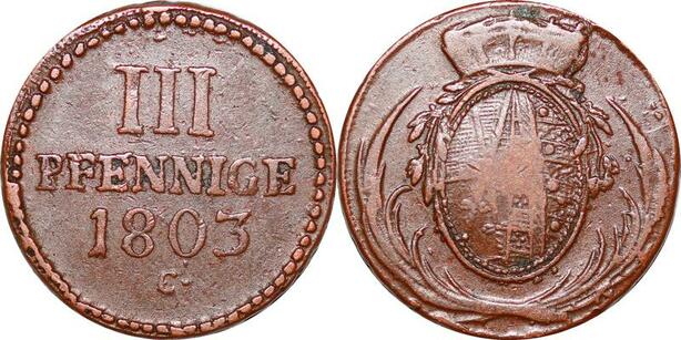 P0073 Germany Saxony 3 Pfennig Friedrich August III 1803 C -> Make offer