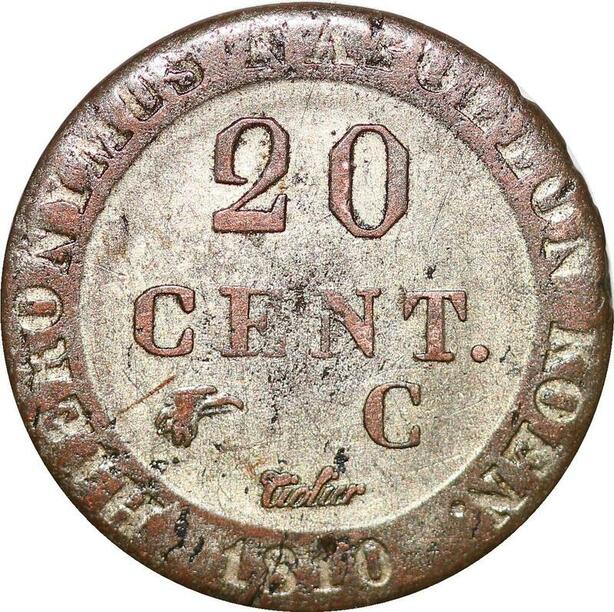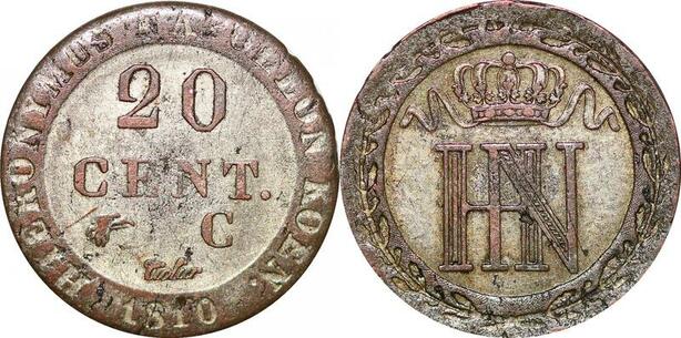 P0090 Germany Westphalia 20 Centimes Jerome Napoleon 1810 C Cassel Silver UNC