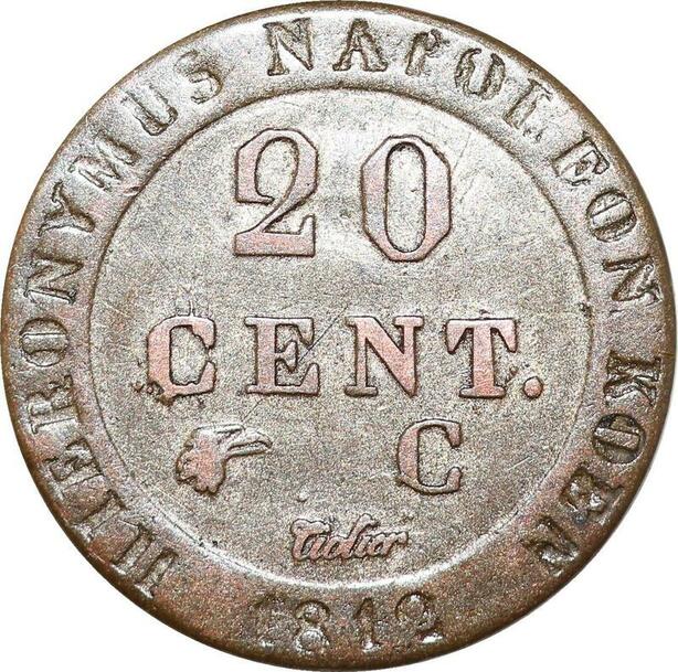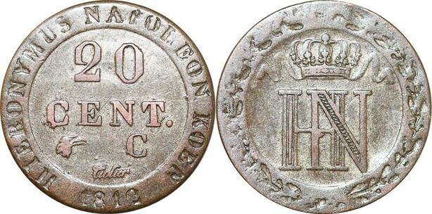P0095 Germany Westphalia 20 Centimes Jerome Napoleon 1812 C Cassel Silver