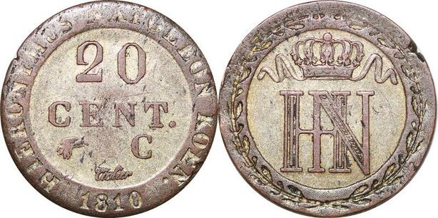 P0104 Germany Westphalia 20 Centimes Jerome Napoleon 1812 C Cassel Silver AU