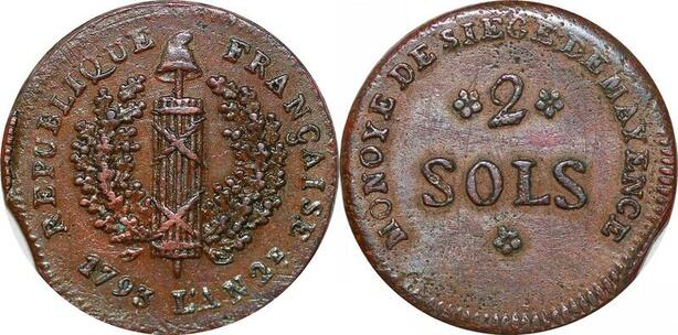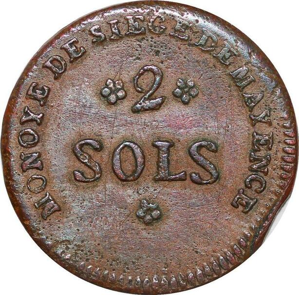 P0106 Germany Siege Mainz Mayence 2 Sols Friedrich Karl Joseph 1793 AU SUP !!