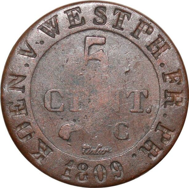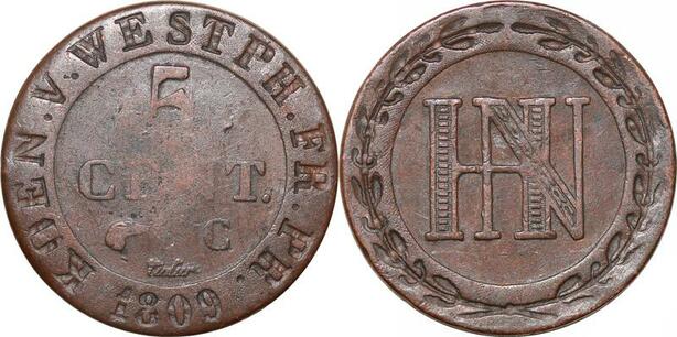 P0133 Germany Westphalia 5 Centimes Jerome Napoleon 1809 C Cassel ->M offer