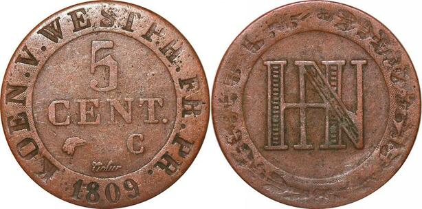 P0135 Germany Westphalia 5 Centimes Jerome Napoleon 1812 C Cassel ->M offer