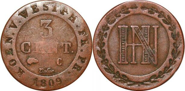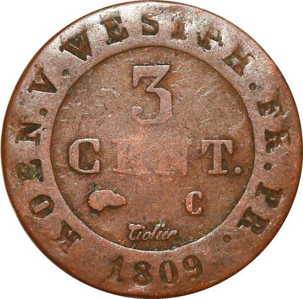 P0142 Germany Westphalia 3 Centimes Jerome Napoleon 1809 C Cassel ->M offer