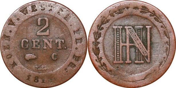 P0150 Germany Westphalia 2 Centimes Jerome Napoleon 1810 C Cassel ->M offer