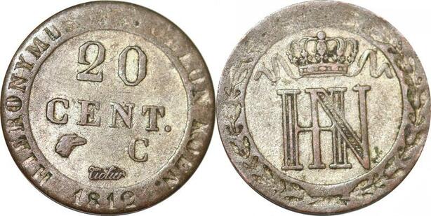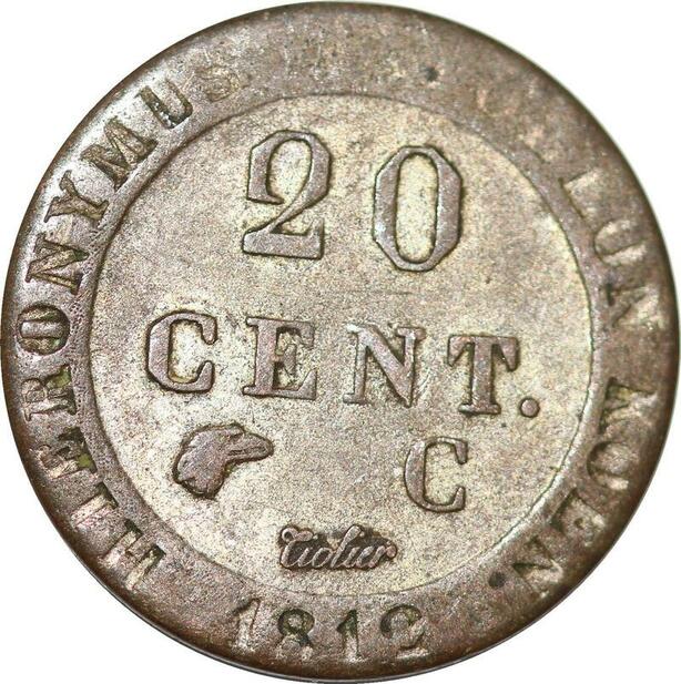 P0164 Germany Westphalia 20 Centimes Jerome Napoleon 1812 C Cassel Silver AU