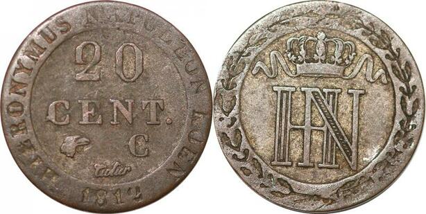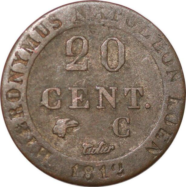P0166 Germany Westphalia 20 Centimes Jerome Napoleon 1812 C Cassel Silver