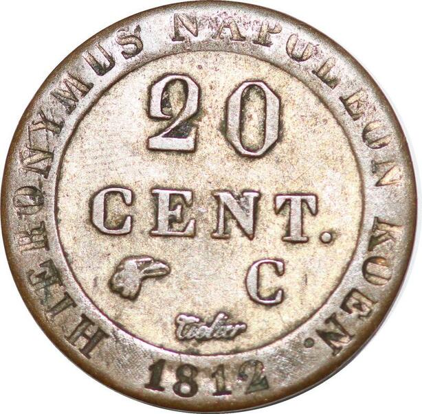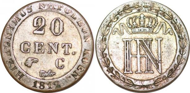 P0167 Germany Westphalia 20 Centimes Jerome Napoleon 1812 C Cassel Silver